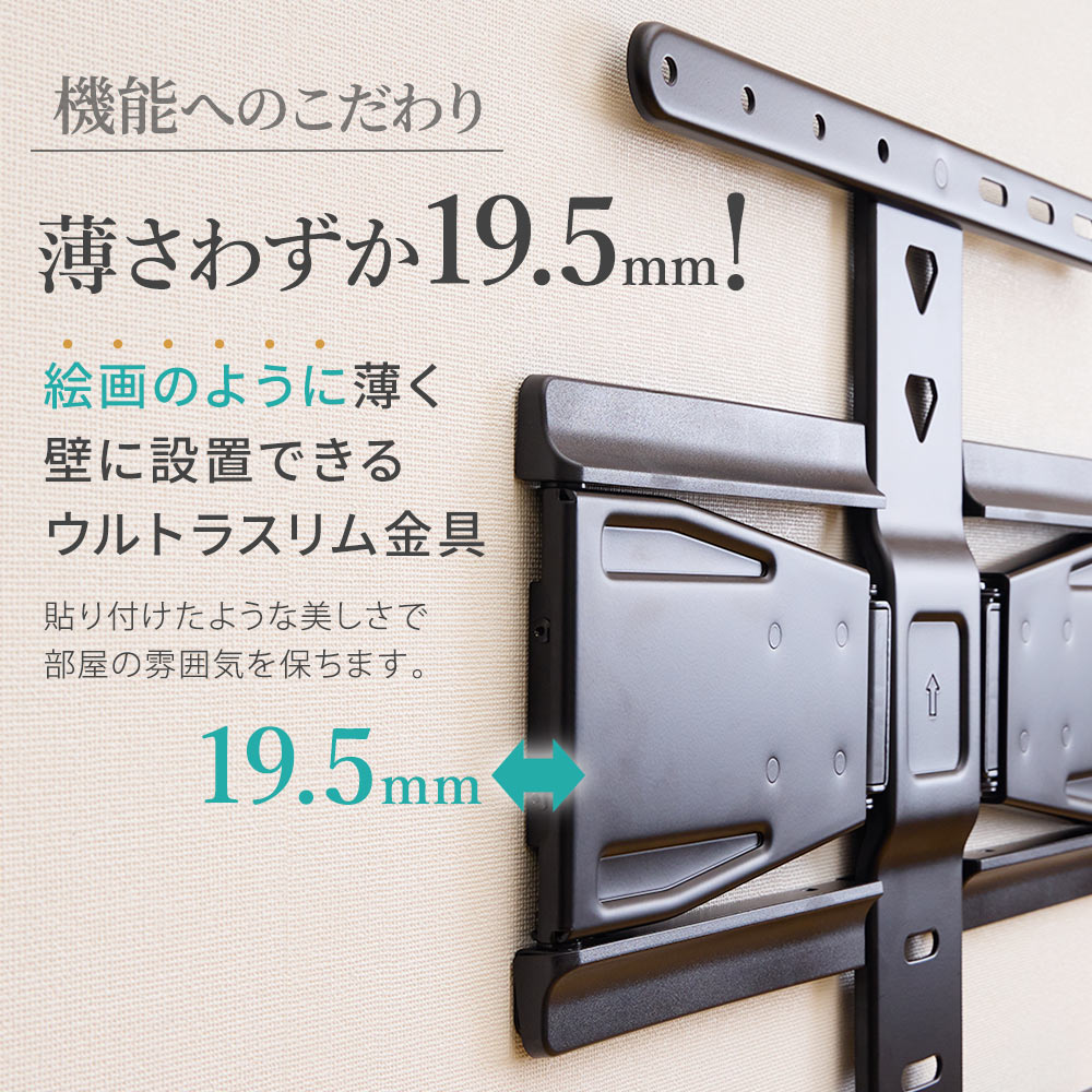 わずか19mmの極薄設置!なのに画面引き出しやチルトなど可動可能なハイブリットテレビ金具