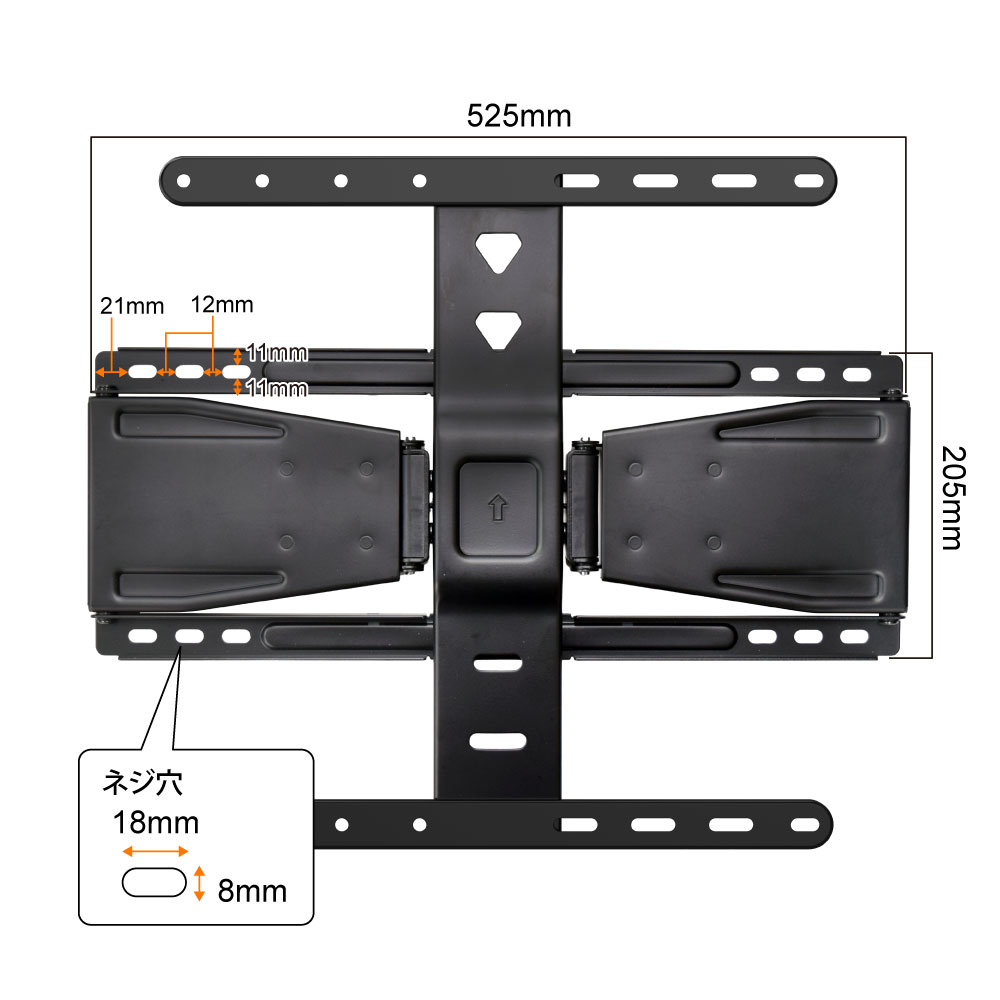 ・テレビ背面にネジ穴があいている事 ・テレビ背面がフラットである事 ・テレビサイズが37~75インチである事 ・テレビ重量が25kg以下である事 ・テレビ背面のネジ穴の間隔が、「200mm×100mm、200mm×200mm、200mm×300mm、200mm×400mm、300mm×100mm、300mm×200mm、300mm×300mm、300mm×400mm、400mm×100mm、400mm×200mm、400mm×300mm、400mm×400mm」である事 |